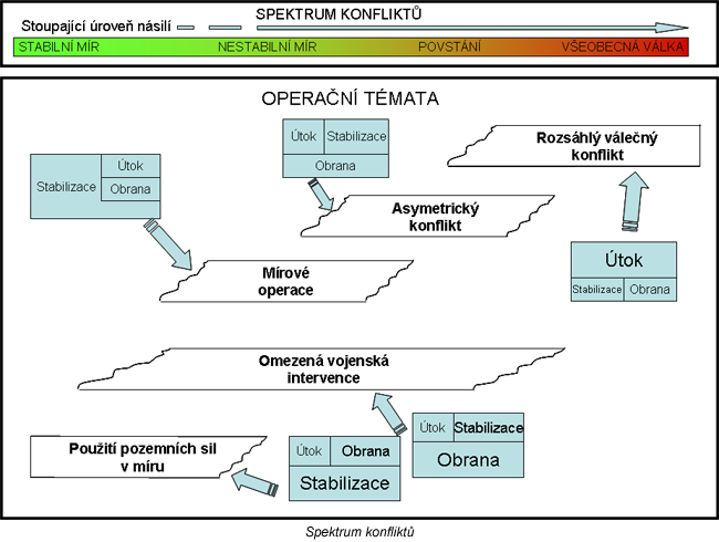 Záleží na typu konfliktu - operačním tématu, které činnosti budou mít převažující charakter.