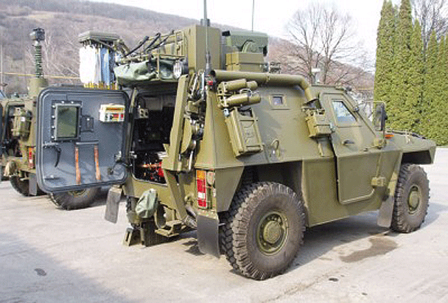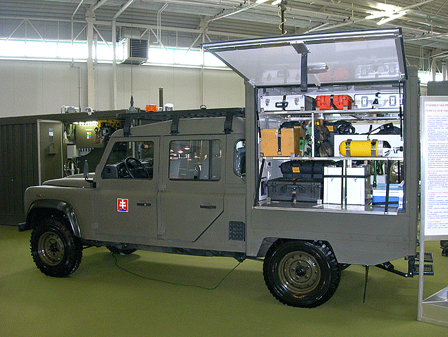 Vozidlo skupiny monitorováni a odběru vzorků VSkOV-M (Foto Ing. Petr Žuja, ÚOPZHN, Vyškov) Vozidlo je primárně určeno k provádění odběru a transportu vzorků kontaminovaných chemickými, radioaktivními nebo biologickými látkami. |
