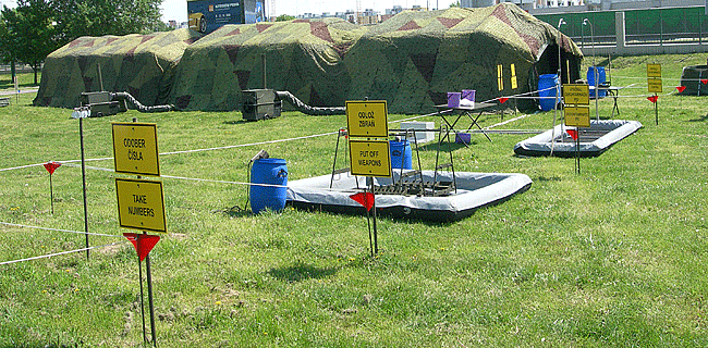 Souprava pro dekontaminaci osob SDO (Foto Ing. Petr Žuja, ÚOPZHN, Vyškov) Souprava je určena k provádění dekontaminace a hygienické očisty osob po jejich vyvedení z kontaminovaného prostoru. |