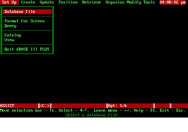 V první polovině 80. let byl uveden na trh program nazvaný dBASE. Byl vyvinut pro osmibitové počítače a na dlouhou dobu byl ve své kategorii jediným produktem. Pravděpodobně nejpovedenější a nejrozšířenější byla verze dBASE III Plus, pro kterou také existovala česká nadstavba (podobná jako na obr. č. 1).