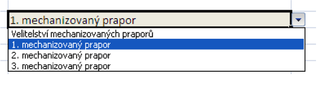 Dejme tomu, že je nutné sledovat počty personálu po vojenských útvarech a zařízeních. Nutností je tedy vytvořit seznam vojenských útvarů a zařízení, kterým bude přiřazován počet jejich příslušníků.