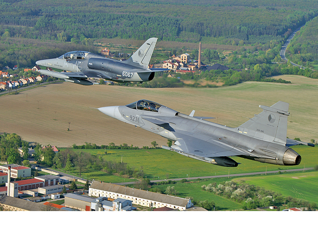 Obrázek č. 2: Formace L-159 ALCA a JAS-39 Gripen (Pramen: digitální archiv 21. zTL)