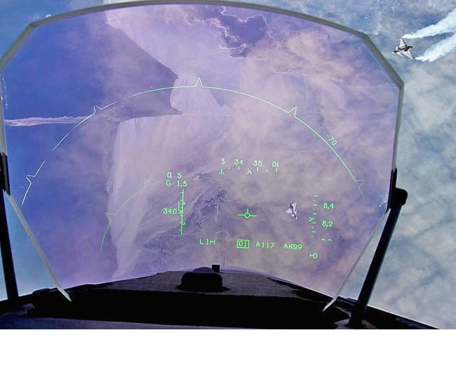 Obrázek č. 8: Průhledový display (HUD) JAS-39 Gripen (Pramen: digitální archiv 21. zTL)