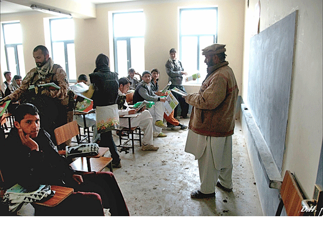 Obrázek č. 20 Student střední školy zaujatý četbou novin Sada-e Azady (Hlas svobody) distribuovaných na celém území Afghánistánu taktickými týmy PsyOp. (Pramen: vlastní)