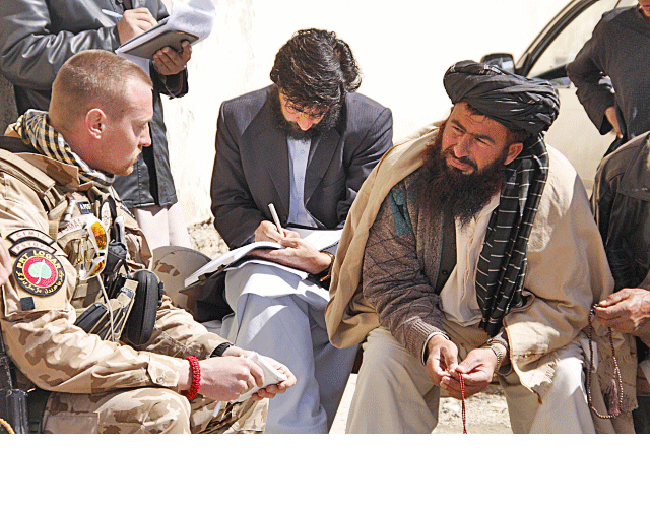 Obrázek č. 5 Jednání na lokální úrovni mezi představitelem komunity (členem šury) a specialistou CIMIC/PsyOp. (Pramen: vlastní)
