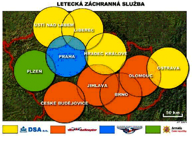 Obrázek č. 3 Pokrytí letecké záchranné služby na území České republiky (Pramen: [13])