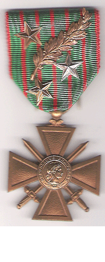 Dne 8. dubna 1915 byl zaveden jako ocenění za statečnost a zásluhy v boji Válečný kříž 1914-1918 (Croix de Guerre 1914-1918), viz obr. 1, který byl udělován všem příslušníkům francouzských ozbrojených sil, cizincům a spojencům nebo jednotkám, kteří byli citováni v denním rozkaze za hrdinství nebo zásluhy v boji na úrovni armády, sboru, divize, brigády, pluku nebo samostatné jednotky. Kříž byl udělen pouze poprvé a každé další udělení nebo citace v rozkaze bylo značeno doplňkem.