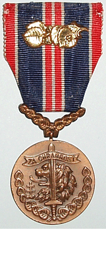 Československá medaile Za chrabrost před nepřítelem (obr. 10) byla založena nařízením československé vlády v Londýně č. 5/1941 Úř. věst. čsl., ze dne 20. prosince 1940. Platnost nařízení byla posléze potvrzena vyhláškou ministra vnitra č. 42/1946 Sb., ze dne 26. ledna 1946 a doplněna vládním nařízením č. 30/1949 Sb., ze dne 18. ledna 1949.
